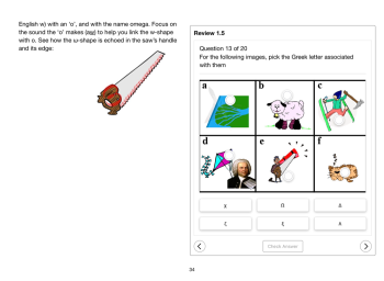 These vocabulary lists appear for each group of letters, so you can practice on words that only use the letters you have learned. To make them easier to read (and also, beneficially, remember), the words are mostly related to English words. Thus you can not only practice your letters, but also pick up some 800 words as well. Where the meaning of the words is less obvious, mnemonic keywords are provided.